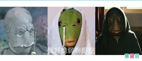 4、当这三个奇怪的形象放在一起进行对比的话,还是比较像《突然变异》中的形象,制造这个头套的商家也是比较有想法的。