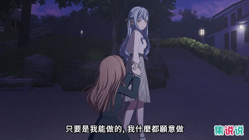 然而,面对爽世的苦苦哀求,祥子冷酷地回绝,指出CRYCHIC乐队已经无法复活,并批评爽世只在意自己的愿望,完全忽视了他人的感受。两人的对话中充满了矛盾与情感的对立,爽世这份执念与祥子的冷漠形成了鲜明的对比,进一步推动了剧情的戏剧性发展。