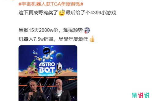 1、在今年宇宙机器人爆冷获得了TGA的年度最佳游戏奖,却被网友吐槽为4399小游戏。