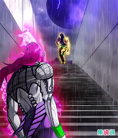 两人替身一个可以暂停时间,一个可以删除时间,而他们遇到的第一个主角团对手,都是波鲁那雷夫,地点均在楼梯口。