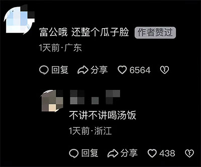 不过,随着越来越多的网友在各种场合玩梗使用,让这个梗也是逐渐趋于调侃调笑,似乎什么行为都可以被称为“富公富婆”。