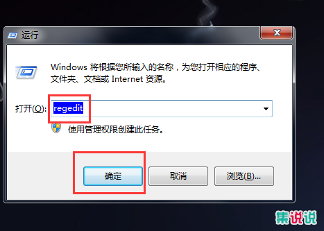 1、WIN+R打开运行窗口,输入“regedit”,点击“确定”。