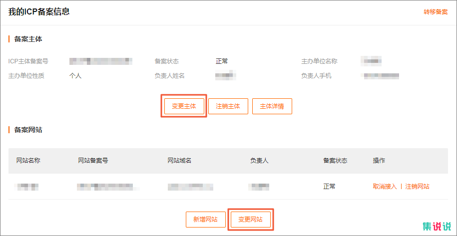 可以在阿里添加网站成功后再修改主体信息,不建议对原接入商进行变更操作,需要先将域名主题转入阿里云,具体参考https://help.aliyun.com/knowledge_detail/36993.html