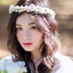 4、新娘造型应选择盘发或披肩直发,梳理整齐,使用者哩定型。最好可修剪出前额刘海,从头顶处长至眉毛,三七分或二八分均可。盘发时脖子后方留出散发若干,电卷。发饰使用白色羽毛制作。在换第二套礼服时,发饰中加上红玫瑰。